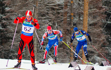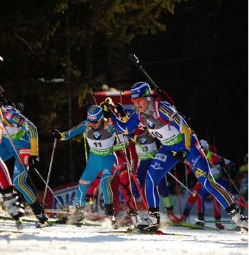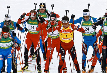 Участники стартуют в таком порядке и с такими интервалами, с какими они финишировали в спринте. Длина дистанции — 12,5 километров у мужчин и 10 километров у женщин. Спортсмены проходят четыре огневых рубежа, места на которых они занимают в соответствии с порядком прихода на стрельбище. Стрельба осуществляется из положений лежа, лежа, стоя, стоя. Промахи наказываются 150–метровыми штрафными кругами.