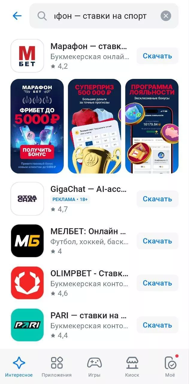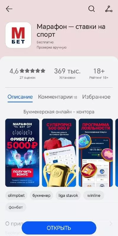 AppGallery (Huawei) — доступ по прямой ссылке с сайта Marathonbet. При переходе с Huawei-смартфонов автоматически открывается карточка приложения. Доступность зависит от региона и типа учетной записи.