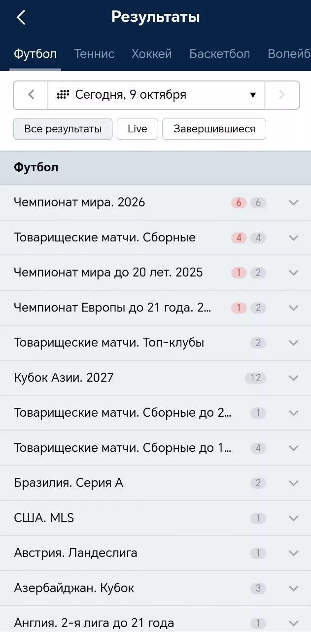 Скорость работы приложения стабильная даже при слабом интернете. В разделе Live отображается несколько сотен событий ежедневно. Коэффициенты обновляются в режиме реального времени.
